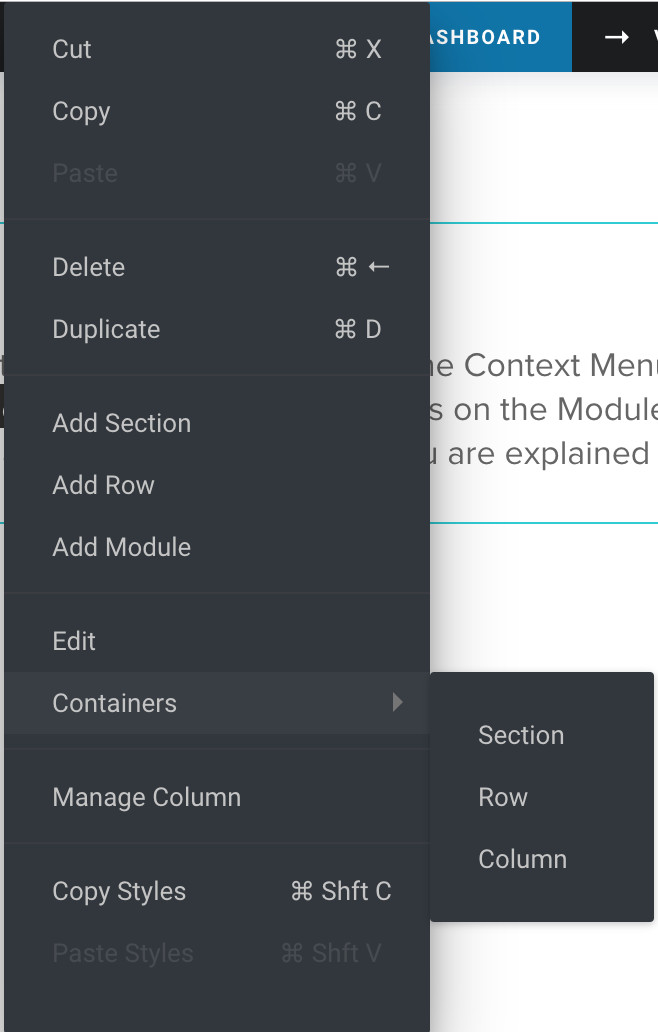 Right Click on any Module in Tatsu to view the Context Menu. The Context Menu has the complete list of options to perform all kinds on operations on the Modules and also navigate within modules. Each of the option in the Menu are explained in this article.